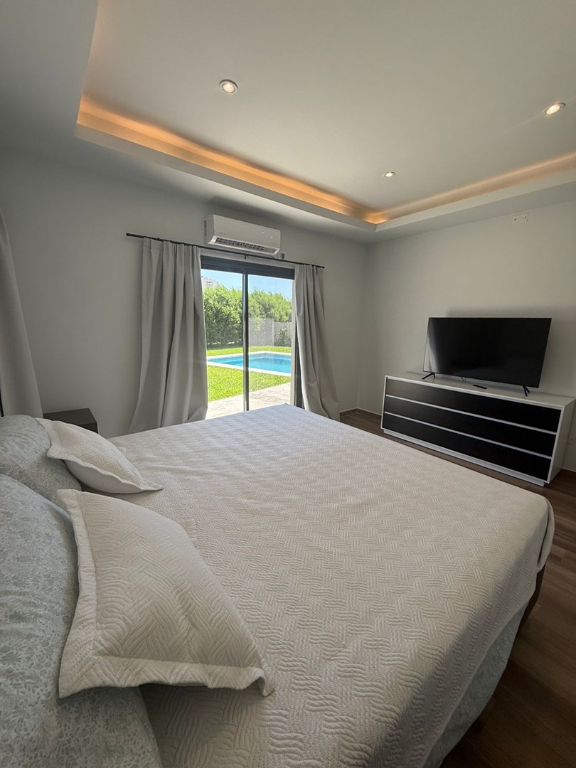 Disponible a partir del 18 Febrero 2026 Esta hermosa casa amoblada y completamente equipada se alquila temporalmente. Desarrollada en una sola planta esta casa combina un diseño moderno y funcional para brindar confort y estilo en cada rincón. Distribución interior: Suite principal con vestidor y baño privado. Dos dormitorios adicionales, que comparten un baño completo. Cocina integrada al living, equipada con muebles de calidad, artefactos modernos, extractor digital y todos los utensilios necesarios. Lavadero independiente. Baño compartimentado con ducha. La propiedad cuenta con aires acondicionados en todos los ambientes, termotanque y losa radiante, asegurando confort durante todo el año. Exteriores: Pérgola para estacionar hasta dos autos. Galería cubierta de 50 m² con parrilla, ideal para encuentros sociales. Piscina de 4 x 8 metros, con sistema de calefacción de agua instalado (sólo resta adquirir la caldera). Tarifas de alquiler TEMPORARIO: Diciembre 2025: U$S 4.000 (Alquilado) Enero 2026: U$S 4.500 (Alquilado) Febrero primera quincena: U$S 2.500 (Alquilado hasta el día 17) Marzo 2026: U$S 3.500 (Disponible a partir del 18 de Febrero) Tarifas de alquiler ANUAL: Marzo 2026 en adelante: U$D 2.200 (Disponible) Servicios generales: Electricidad Gas natural Agua corriente Pavimento Cloacas Cablevisión Teléfono Otros espacios: Lavadero Jardín trasero Nota importante: La información publicada no es contractual. Las medidas han sido provistas por el propietario y se confirmarán con la documentación correspondiente.
